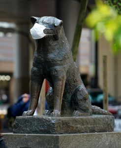 Even Shibuya’s Hachiko can now be seen wearing a mask